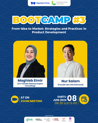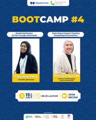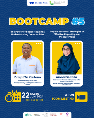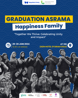 Menjalin relasi dan kerjasama yang baik antara komunitas dan masyarakat umum. | Alumni/lulusan Beasiswa Happiness Family yang mampu meluaskan dampak melalui social entrepreneur yang dibuat/ditingkatkan setelah bootcamp | Pelaksanaan pelatihan | |